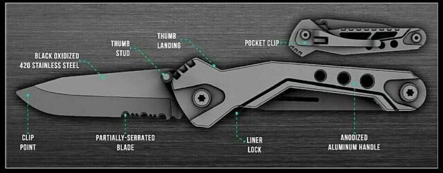 • ľahký a robustný zatvárací nôž • čepeľ zafixovateľná jednou rukou • eloxovaná, nehrdzavejúca oceľová čepeľ • dĺžka čepele: 7 cm, 2 cm s ozubením • rukoväť z eloxovaného hliníka • klips na uchytenie • rozmery (v zavretom stave): 10,9 x 3,1 x 1,7 cm